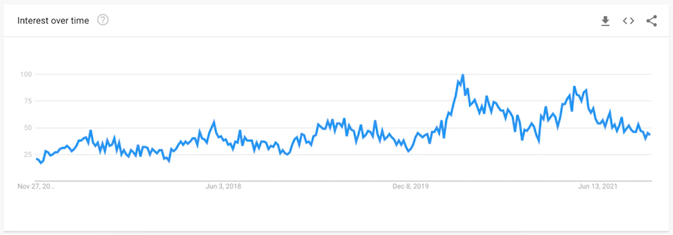 Vender plantas online é uma ideia de negócio viável, e o Etsy é o lugar perfeito para colocar suas plantas à venda. “Plantas Etsy” é uma frase de pesquisa popular, com 5.000 consultas por mês. E com tantas pessoas passando mais tempo em casa, as plantas de casa são especialmente importantes. Veja como as pesquisas por “plantas domésticas” aumentaram logo após a pandemia: