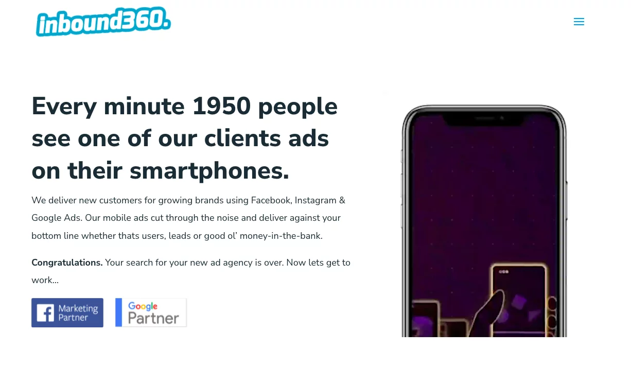 Parceira do Facebook e do Google Ads, a Inbound360 oferece uma abordagem abrangente para se destacar online. Você pode aproveitar a assistência da empresa na criação de anúncios gráficos e em vídeo para o Facebook, bem como campanhas publicitárias abrangentes com conteúdo gerado pelo usuário.