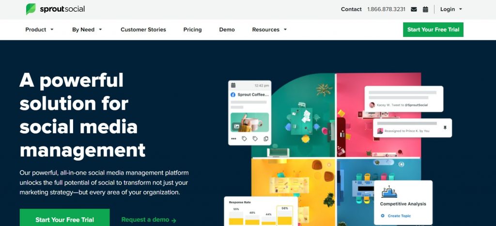 Como parceiro do Facebook, o Sprout Social é uma das ferramentas populares do Facebook usadas por marcas maiores. Ele oferece uma grande seleção de ferramentas que ajudarão você a gerenciar uma página do Facebook, criar conteúdo e acompanhar suas conversas.