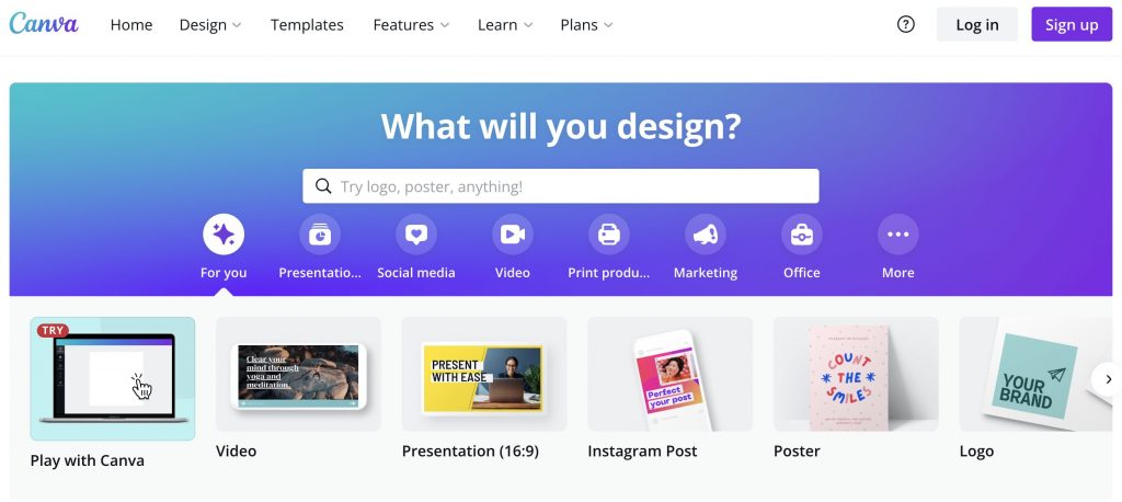 O Canva oferece mais de 130.000 modelos para postagens no Facebook e quase 16.000 modelos de capa do Facebook (e milhares deles são gratuitos). Se você deseja criar uma colagem, um modelo de anúncio ou uma capa para um evento, é fácil personalizar esses modelos para torná-los seus e alinhá-los à sua marca atual. Além desses modelos, ele também oferece imagens, esquemas de cores e combinações de fontes. Portanto, não há necessidade de começar do zero.