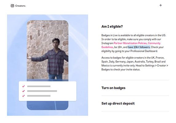 Alguns programas têm regras, como o programa Badges do Instagram, que exige que os influenciadores tenham mais de 10.000 seguidores.
