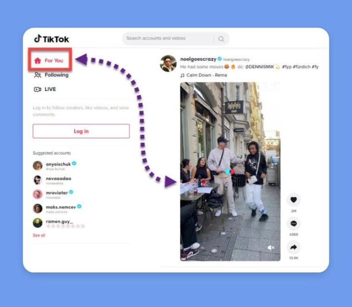 Basta pesquisar hashtags comuns em seu nicho e, depois de ver os vídeos de tendências, comece a interagir com eles. Ao curtir e comentar, o TikTok começará a preencher seu feed Para você com mais vídeos populares em seu nicho.