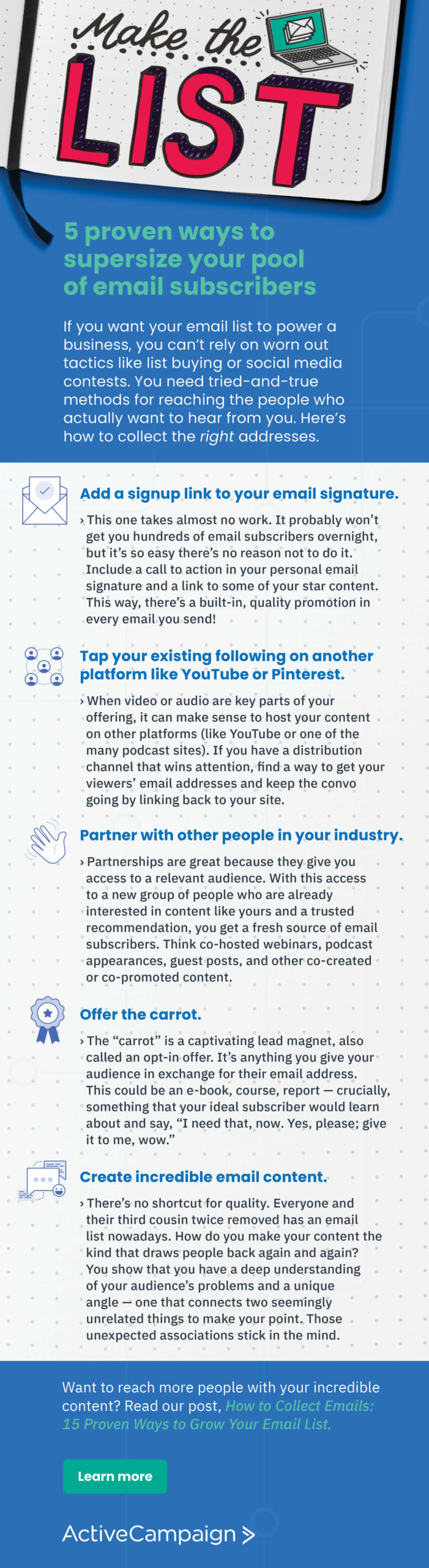 Ao criar sua lista de e-mail, você precisa de maneiras de coletar endereços de e-mail.