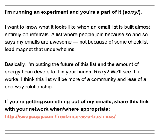 Motivo mais comum para listas de e-mail pequenas – opte por uma cópia que torna difícil para as pessoas entenderem o que recebem Tweet isso!