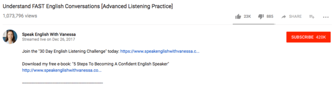 O YouTube faz muito sentido para Vanessa como plataforma – afinal, as pessoas querem ouvir inglês enquanto aprendem inglês. Mas ela quer ter mais acesso sob demanda ao seu público (e a capacidade de vender diretamente para eles), então ela cria uma lista de e-mail de qualquer maneira.