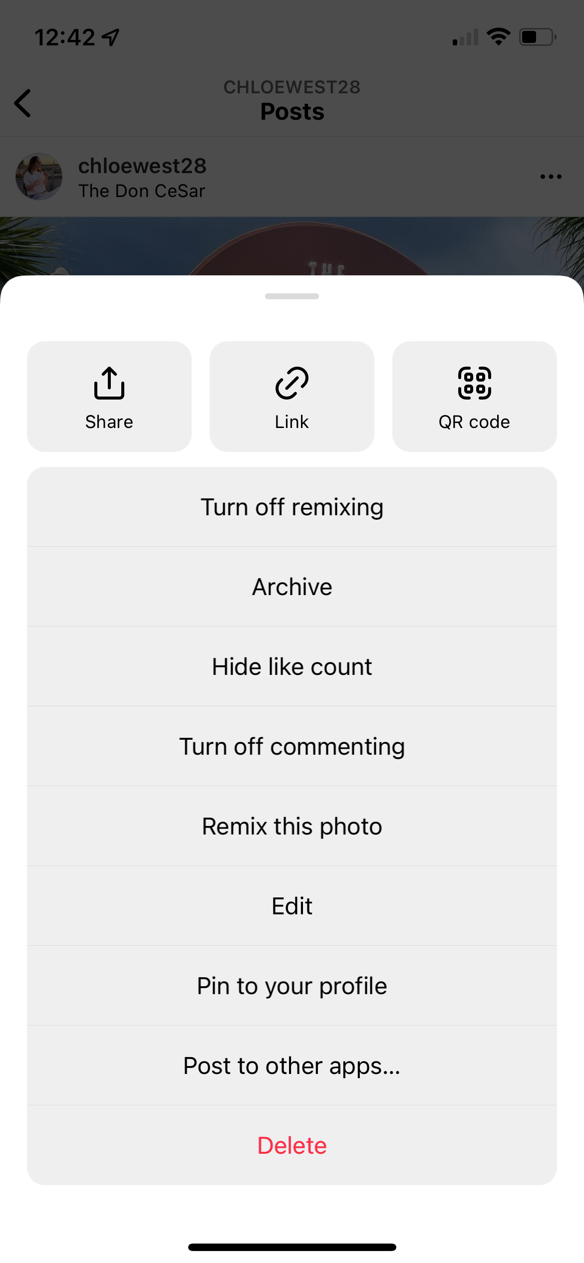 Etapa 3. Este menu também oferece outras opções, como desativar comentários retroativamente, fixar a postagem no topo do seu perfil e muito mais.