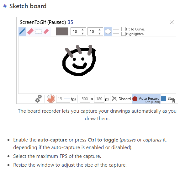Esta ferramenta de criação de GIF exclusiva, gratuita e de código aberto permite que você grave sua tela e crie um GIF de tudo ou de uma parte dela. Você pode fazer o mesmo com os desenhos em sua prancheta. Na verdade, ele irá capturar seus desenhos enquanto você os desenha.