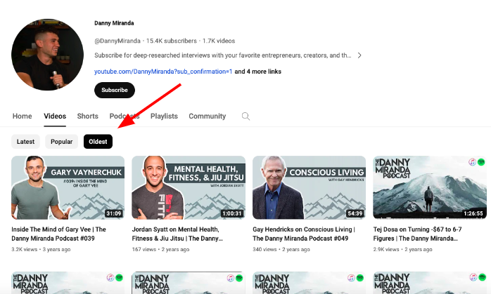 Outra estratégia é ir ao canal dessa pessoa no YouTube para classificar por “mais antigo” e assistir aos primeiros vídeos que ela postou antes de fazê-lo.