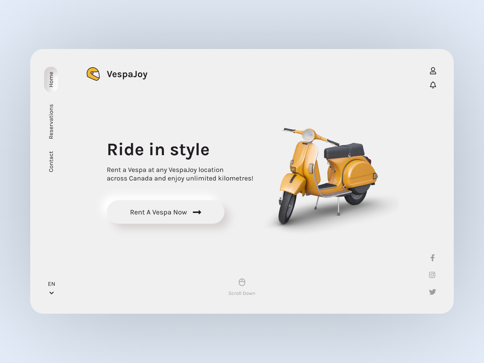O conceito da web VespaJoy da designer Sara Salehi é um belo exemplo de como o neumorfismo se parece em ação:
