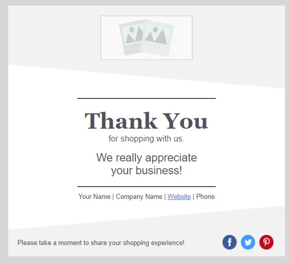 Enviar um e-mail é uma das maneiras mais fáceis de transmitir o quanto você é grato. Um e-mail também lhe dá a chance de criar familiaridade com a marca, compartilhar um incentivo adicional e manter a comunicação.