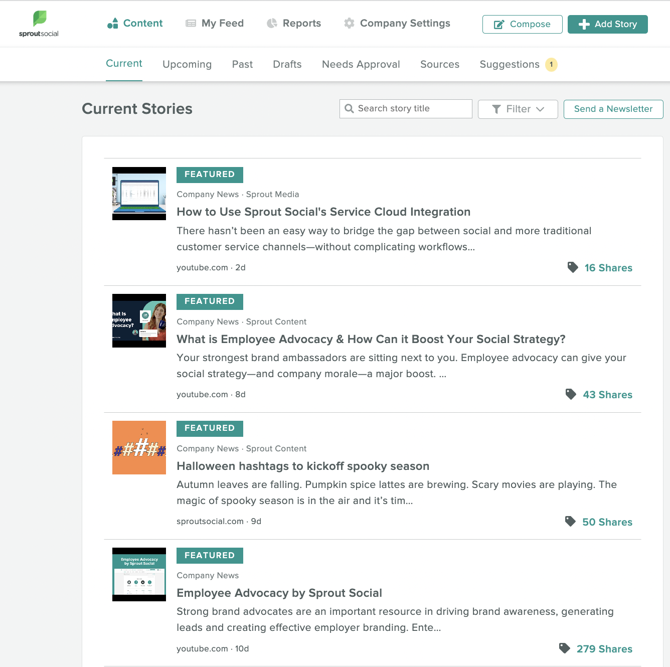 Sejam postagens que você já publicou ou conteúdo de terceiros que você está obtendo, você pode usar o recurso Enviar para Advocacy na ferramenta Compose do Sprout para adicionar facilmente novas fontes à nossa plataforma de advocacy.