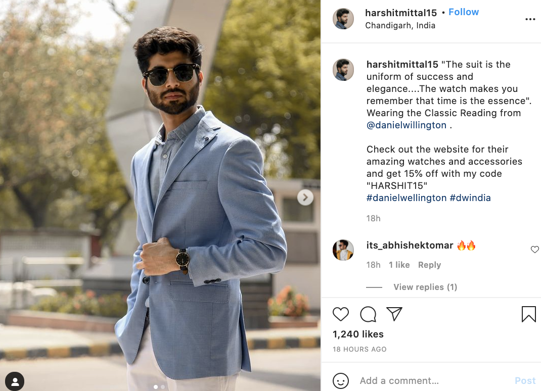 Inspire-se na marca sueca de relógios Daniel Wellington (@danielwellington), que transformou um pequeno investimento em um negócio multimilionário em parceria com microinfluenciadores . A marca identificou personas-chave cujos feeds sociais focavam moda, estilo de vida e fotografia. Os microinfluenciadores escolhidos receberam um relógio grátis em troca de uma foto em seu feed, acompanhada por uma tag e uma hashtag #danielwellington. Cada influenciador tem seu próprio código de desconto exclusivo para incentivar seus seguidores a fazer a compra.