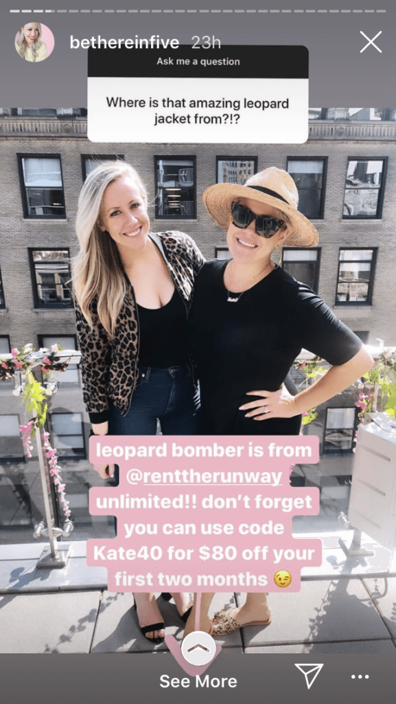Foi assim que a blogueira @bethereinfive conseguiu trabalhar em um desconto de afiliado super fácil, recurso de produto e link em uma interação totalmente natural!