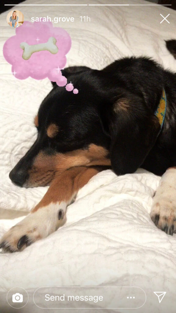 Embora eles possam visitar seu feed a qualquer momento, uma história desaparece para sempre depois de um dia! Além disso, seus seguidores estão sempre cientes disso – o período de tempo em que a história foi publicada é postado ao lado do nome de usuário (veja ao lado do nome de usuário de @sarah.grove na captura de tela abaixo)!