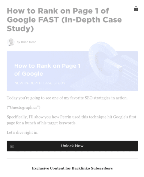Brian Dean do Backlinko tem esse conteúdo exclusivo espalhado por todo o seu blog. Se você estiver olhando o conteúdo dele, não poderá perder isso.