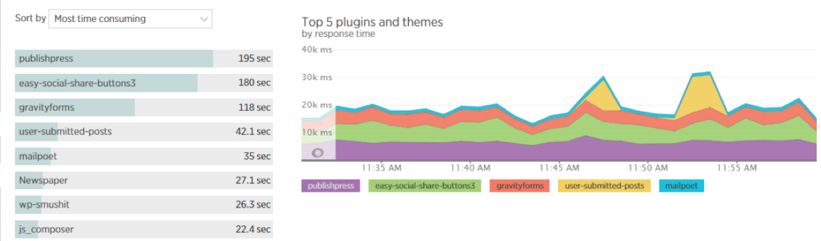 Apenas olhando para os dados, você pode facilmente apontar os plugins com alto tempo de resposta. Neste ponto, você não precisa remover o plug-in imediatamente, pois ele pode estar desempenhando um papel importante no seu site WordPress. No entanto, você pode considerar ajustar as configurações e começar a considerar alternativas.