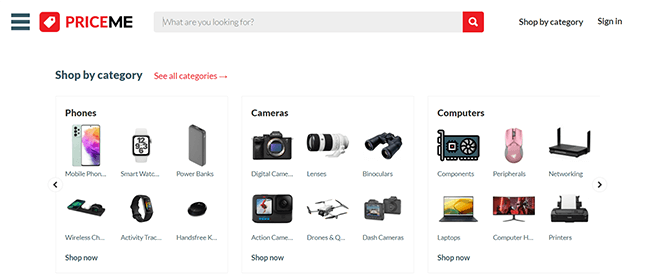 PriceMe é um dos principais sites de comparação de preços na Austrália. Os usuários do Ozzy podem procurar produtos por categoria ou, se estiver procurando por algo específico, use a barra de pesquisa para encontrá-lo.