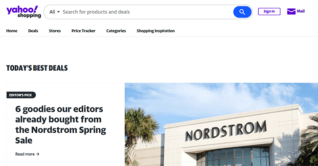 Você também pode usar o rastreador de preços para configurar alertas de preços e receber notificações quando os preços caírem. Yahoo! O Shopping possui uma interface fácil de usar, tornando-o uma das melhores opções desta lista, e também possui alguns recursos adicionais úteis, como uma ferramenta de inspiração de compras.