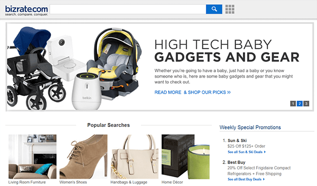 Você pode comparar tudo no Bizrate, desde utensílios domésticos e presentes até peças automotivas e livros. Quando você procura um produto no Bizrate, o algoritmo vasculha a web em busca das melhores ofertas absolutas.