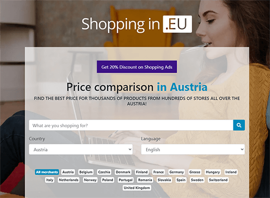 ShoppingIn é um site europeu de comparação de preços. Você pode usá-lo para encontrar as melhores ofertas em milhares de produtos de fornecedores em toda a Europa.