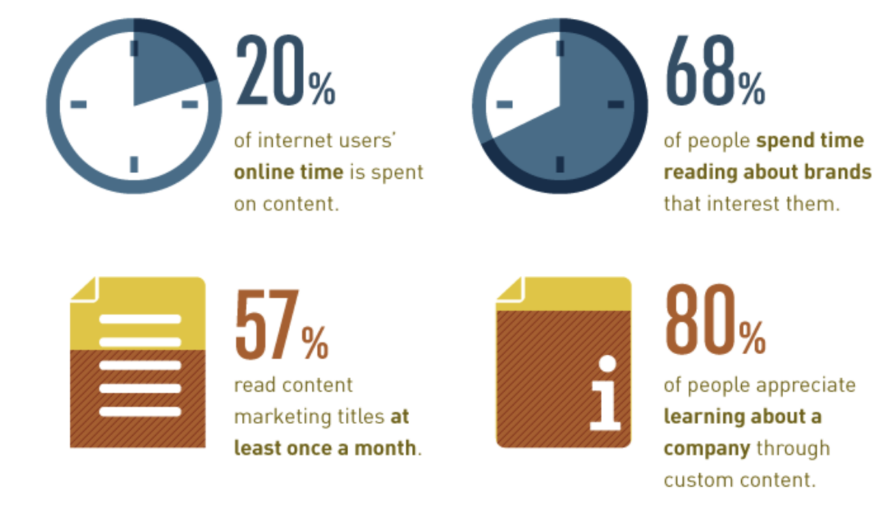 Aqui, vemos mais evidências da necessidade de criar conteúdo de qualidade. Dado o número aparentemente infinito de maneiras pelas quais os usuários podem gastar seu tempo, o fato de gastarem um quinto dele consumindo conteúdo nos mostra que é realmente uma boa maneira de envolver seu público.