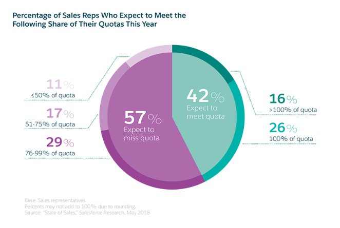 De acordo com a Salesforce, 57% dos representantes de vendas não cumprem sua cota atualmente.