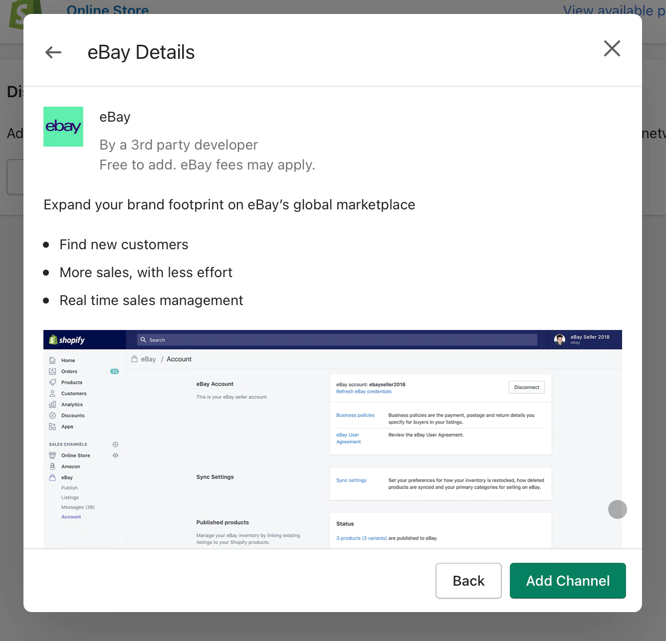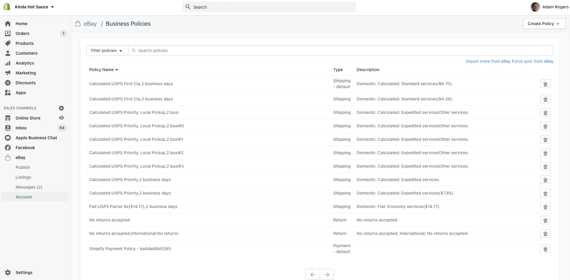 - Gerencie suas políticas comerciais do eBay de dentro da Shopify