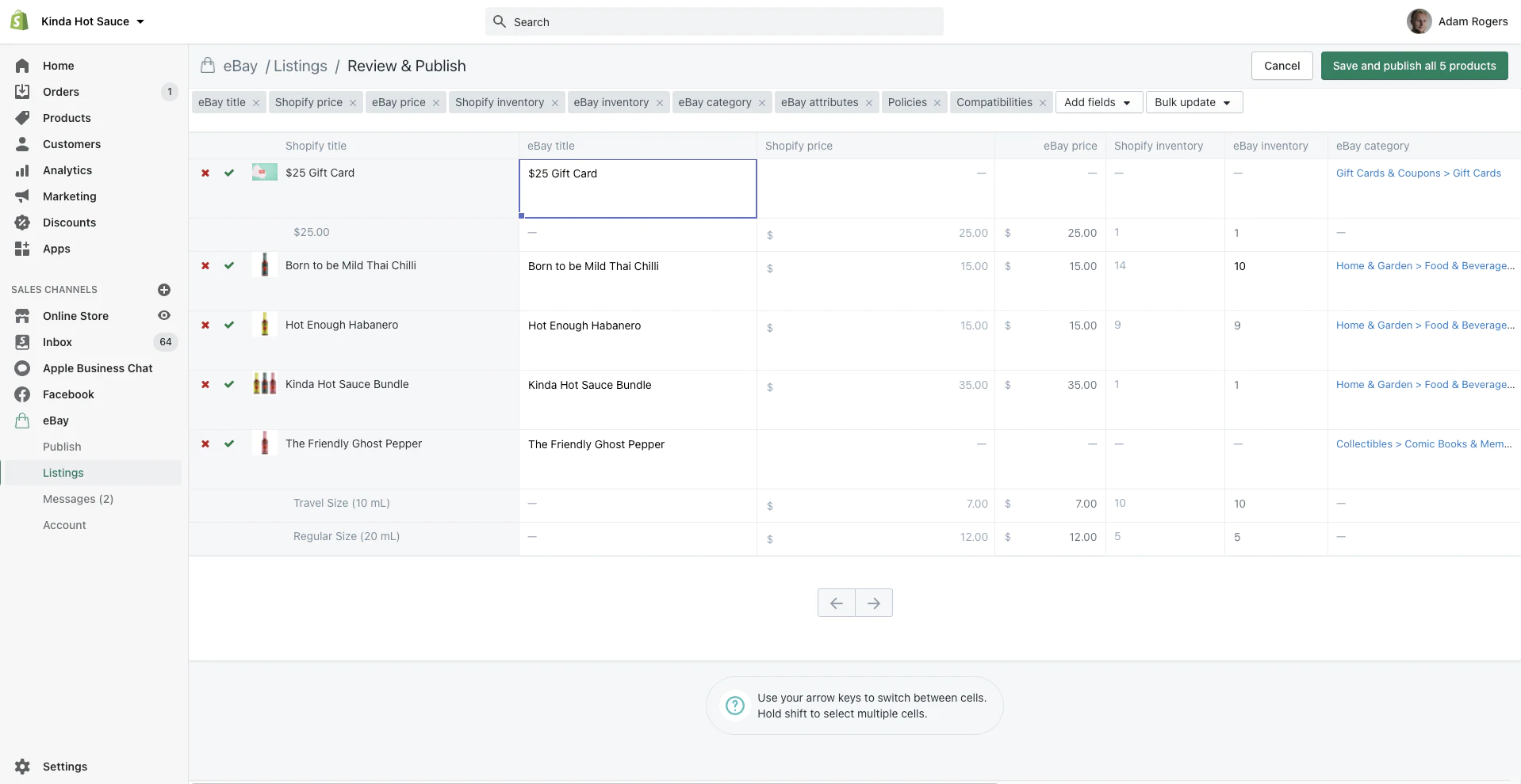 Aqui estão algumas coisas que você pode fazer com o aplicativo eBay Shopify: