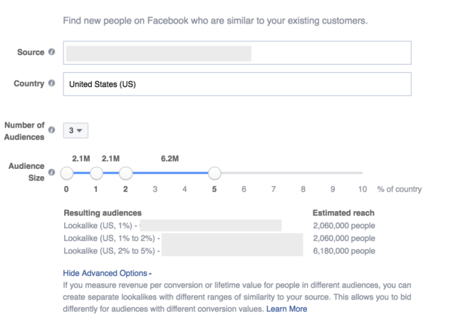 Em 2017, evite esses erros criando alguns novos públicos LAL e experimentando diferentes porcentagens. Você pode descobrir que um LAL de 5% tem um desempenho extremamente bom.