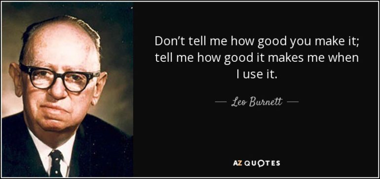 Em 2017, vamos personalizar nossa mensagem de acordo com a posição do público no funil e seguir o conselho da lenda da publicidade Leo Burnett: “Não me diga como você é bom; diga-me como fico bom quando o uso. ”