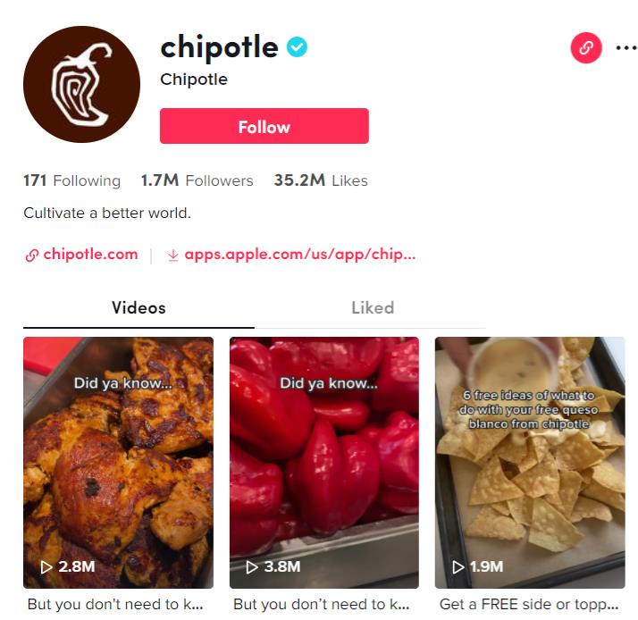 A Chipotle, por exemplo, usa a mesma foto de perfil do Twitter e do Instagram. Isso os ajuda a manter uma imagem de marca consistente.