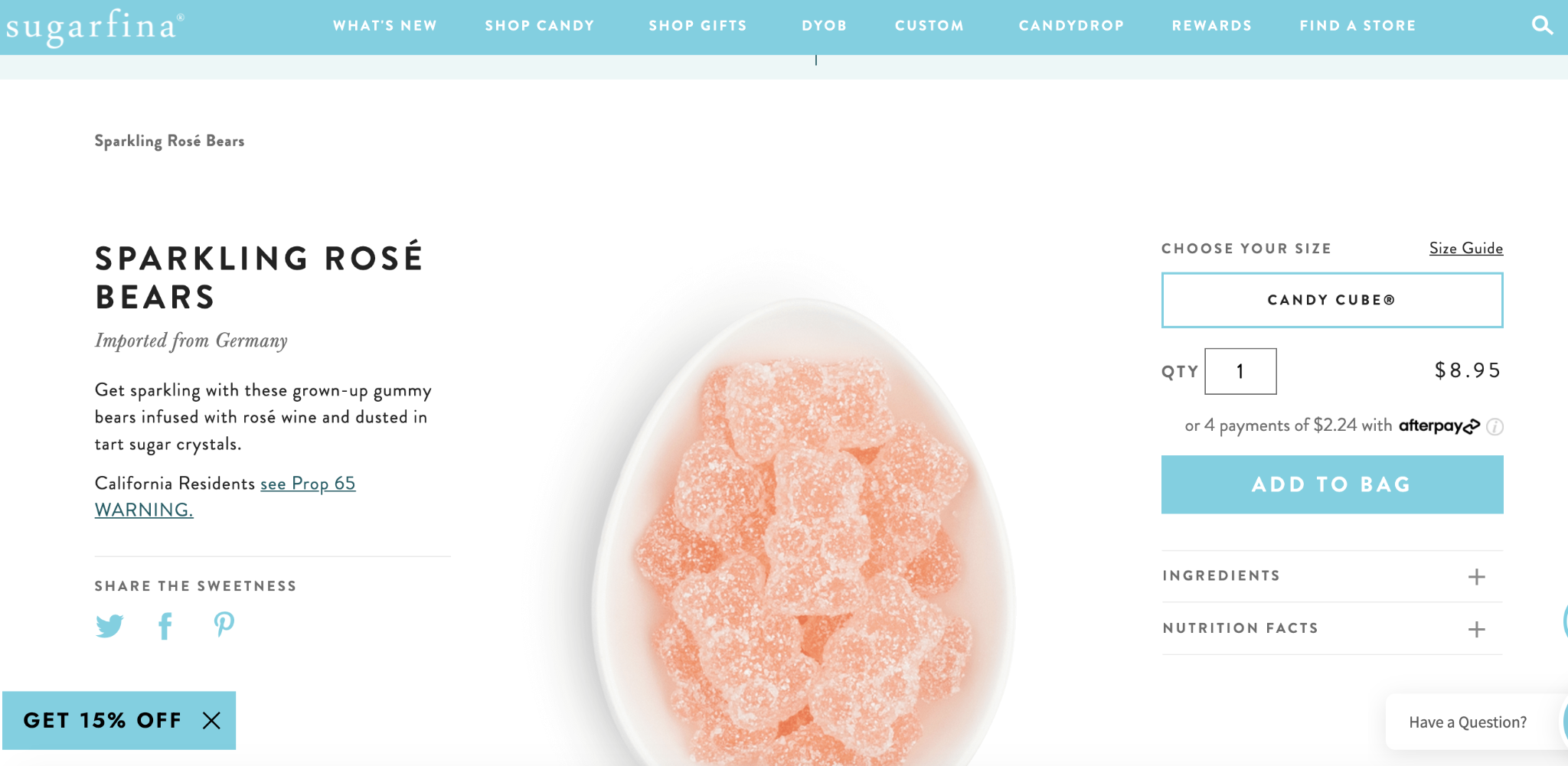 Deixe os ursinhos de goma e as minhocas para as crianças — Tom e Donna aprovariam essas gomas de rosas cintilantes Sugarfina de US$ 8,95.