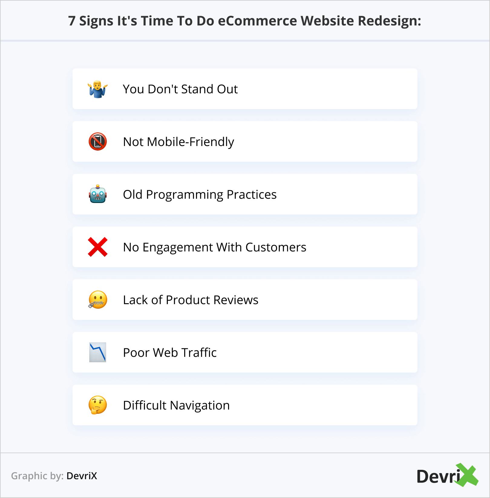 Então, como você sabe se é hora de uma reformulação do site de comércio eletrônico? Se você puder responder sim a qualquer um dos seguintes sinais, talvez seja hora de mudar. Não se preocupe, nós podemos ajudar! Com nossa equipe de especialistas em desenvolvimento e design da Web, podemos orientá-lo em todas as etapas do processo para que a reforma do seu site seja exatamente o que sua empresa precisa. Pronto para começar? Entre em contato conosco hoje!