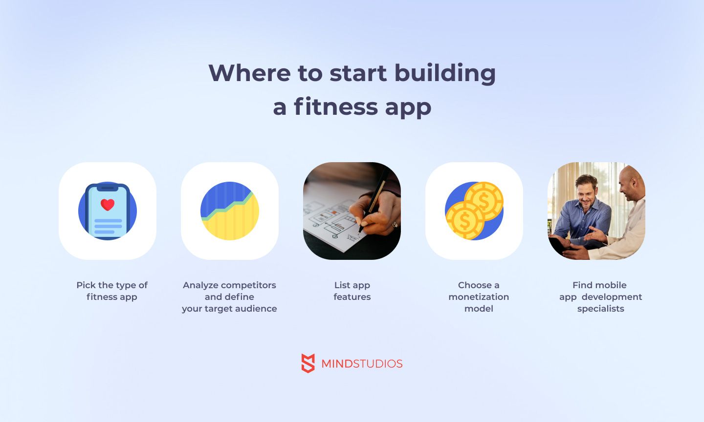 O caminho para o sucesso em todos os negócios começa com um plano . Ao criar um aplicativo de fitness, você precisa começar definindo o tipo de aplicativo. Ao escolher o tipo de aplicativo a desenvolver, você define a direção de todo o seu projeto. O tipo de aplicativo também predetermina seu mercado, concorrentes, público-alvo e recursos do aplicativo . Ao compilar um plano de negócios para um aplicativo móvel, você também deve pensar em uma proposta de valor exclusiva e em maneiras de obter dinheiro.