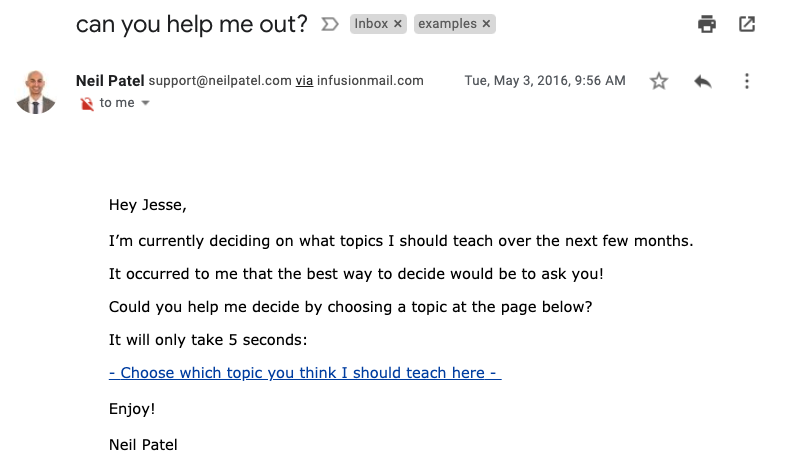 Agora, veja este e-mail de Neil Patel.