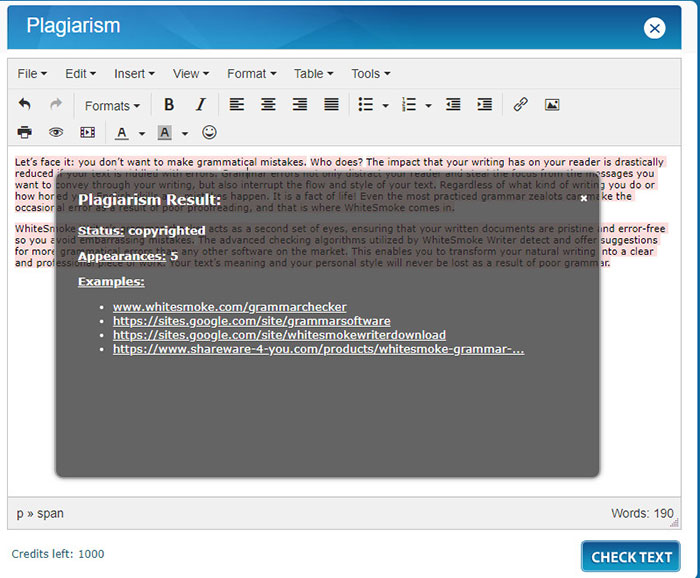 Esse recurso o ajudará a manter sua escrita distinta e a garantir que seu conteúdo seja original e único. Você também pode verificar outras melhores ferramentas de verificação de plágio se precisar da alternativa de plágio WhiteSmoke.