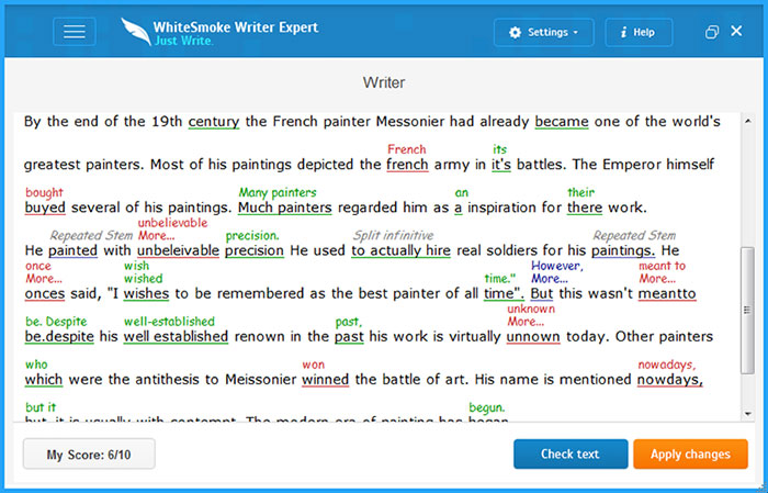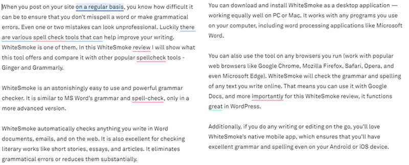 Eu gosto da ferramenta de verificação ortográfica e gramatical do WhiteSmoke. A interface parece limpa e achei muito fácil de usar.