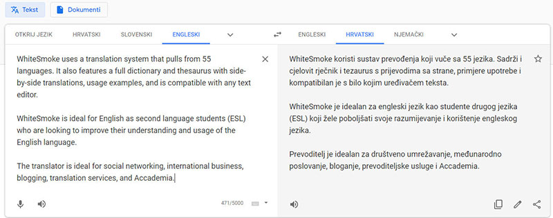 WhiteSmoke tem uma função de tradutor que pode traduzir conteúdo em 55 idiomas. Ele também possui um dicionário completo e enciclopédia com traduções lado a lado, exemplos de uso e é compatível com qualquer editor de texto.