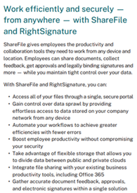 Embora a Kinaxis tenha optado por não escrever sobre sua solução, a Citrix faz isso bem em Think Beyond File Storage to Accelerate Business Efficiency. Ele explica como seus produtos ShareFile e Right Signature dão acesso a todos os arquivos por meio de um portal único e seguro, dão controle sobre a dispersão de dados, automatizam fluxos de trabalho, aumentam a produtividade, aproveitam o armazenamento flexível e coletam feedback e aprovações de documentos precisos.