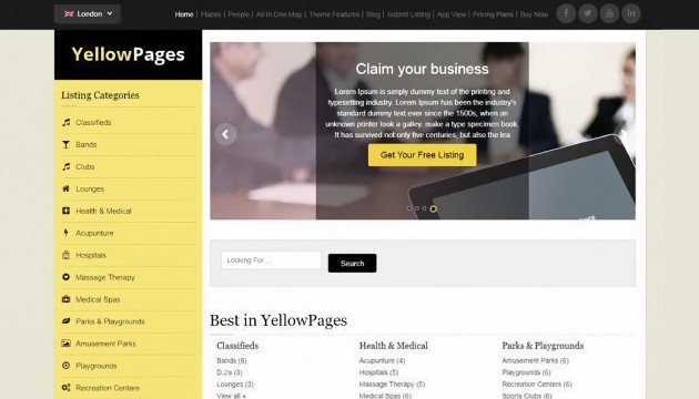 As Páginas Amarelas são um diretório online que ajuda os usuários a encontrar empresas locais, incluindo restaurantes, hotéis e serviços. Os usuários podem pesquisar empresas com base em localização, categoria e palavras-chave e acessar informações como detalhes de contato, avaliações e classificações.