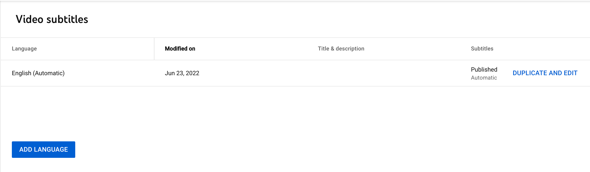 A guia Legendas permite adicionar e gerenciar legendas em seus vídeos. O YouTube suporta legendas automáticas para alguns idiomas, como inglês, mas você sempre pode adicionar legendas manualmente para mais idiomas.