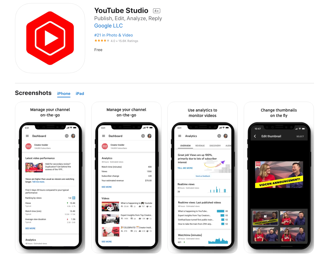 Você precisará fazer o download de um aplicativo separado para acessar o YouTube Studio em dispositivos móveis. O aplicativo está disponível para Android, iPhone e iPad. Você pode baixá-lo manualmente na loja de aplicativos ou pelo aplicativo do YouTube.