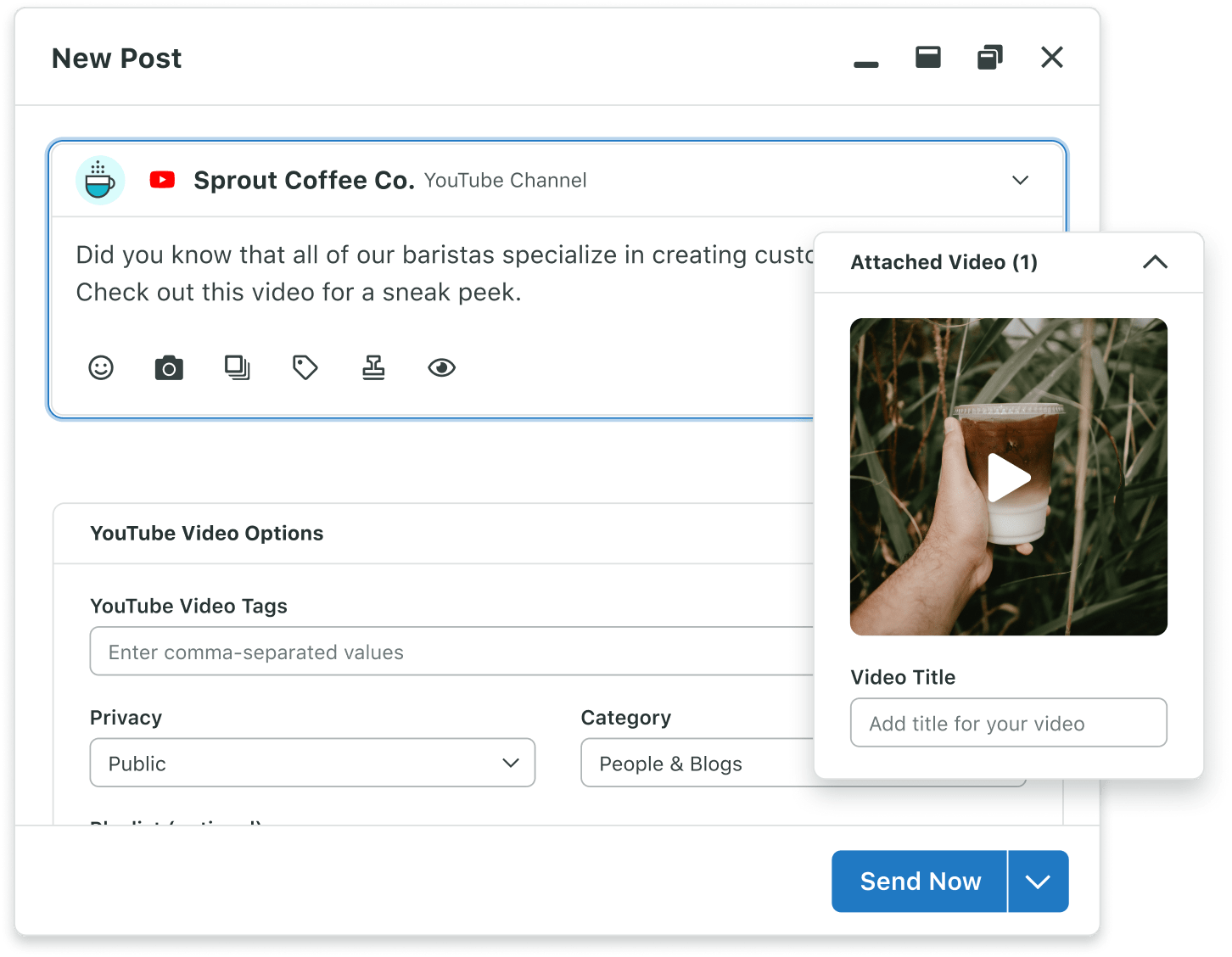 A capacidade de gerenciar seus ativos de vídeo social e agendá-los em um só lugar também é um divisor de águas. Quer fazer uma postagem cruzada entre o YouTube e o Facebook? Quer publicar suas atualizações sociais e conteúdo do YouTube em uma plataforma? Sprout pode fazer as duas coisas.