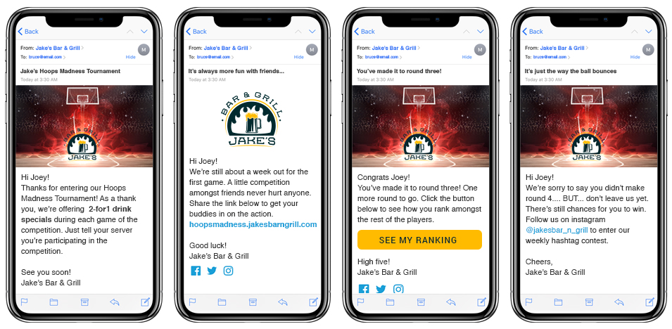 O abordare inteligentă și interesantă a căsătoriei promoțiilor cu e-mailurile ulterioare declanșate de comportament este de a planifica mai multe etape în loc de un eveniment unul și gata.