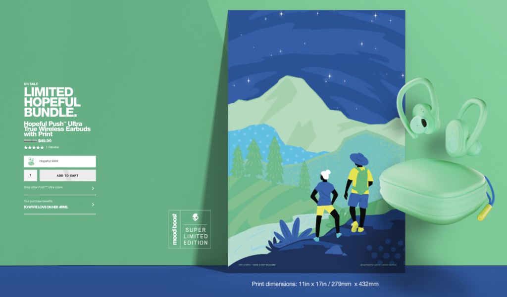 De exemplu, dacă vindeți o canapea sau un tapet, asigurați-vă că clienții pot mări și pot vedea textura și detaliile de aproape. Skullcandy face o treabă grozavă prezentându-și produsele în moduri interesante.