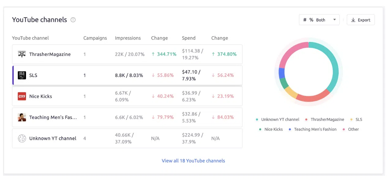 Această funcție oferă informații valoroase despre distribuirea reclamelor pe canalele YouTube, ajutându-vă să înțelegeți acoperirea și impactul eforturilor dvs. de publicitate video.