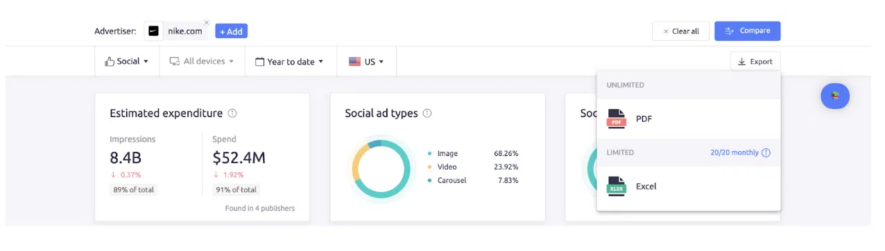 Capacitatea de a compara activitățile de marketing ale concurenților, de a analiza campanii și cuvinte cheie și de a obține informații valoroase despre performanța rețelelor sociale și a reclamelor video îi întărește și mai mult valoarea.