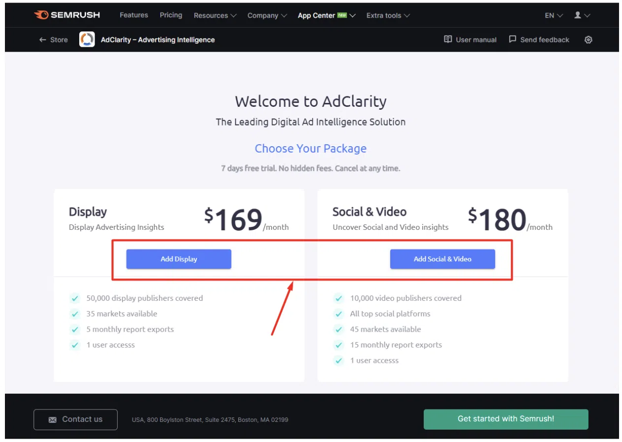 Prețurile AdClarity By Semrush Apps