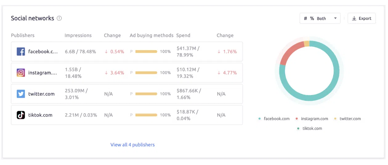 Oferă informații valoroase despre afișări, cota de voce și cheltuieli pentru fiecare metodă de cumpărare, dându-vă puterea să luați decizii bazate pe date cu privire la strategiile dvs. de cumpărare a anunțurilor.