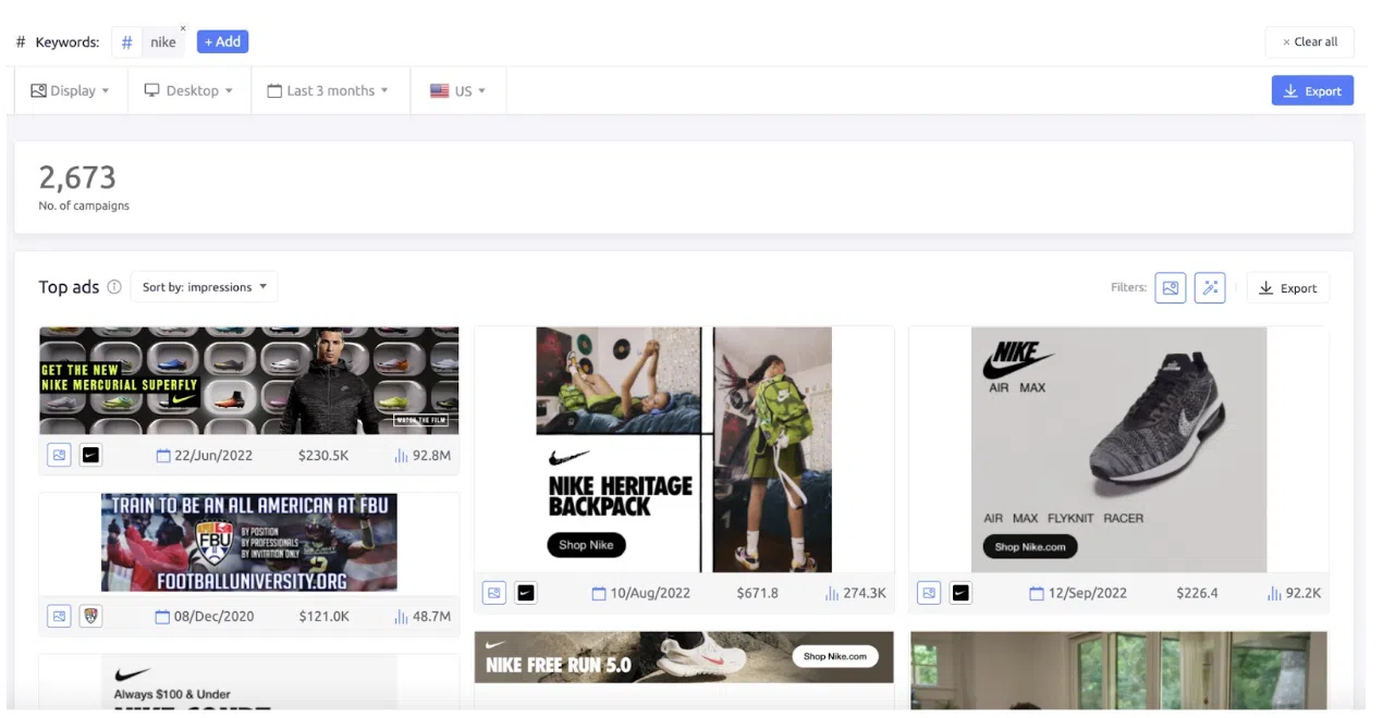 - Durata campaniei: examinând prima apariție și ultima dată detectată a campaniilor, puteți face ipoteze în cunoștință de cauză cu privire la eficacitatea acestora. Aceste informații vă permit să reproduceți sau să îmbunătățiți campaniile de succes, maximizând impactul publicitar.